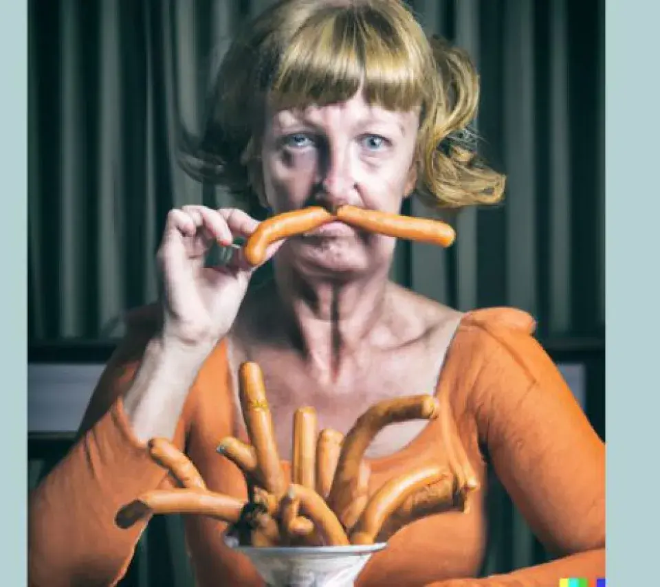 Hyperchips, « Albertine Meunier mange des frites et des saucisses », #190, 2023
